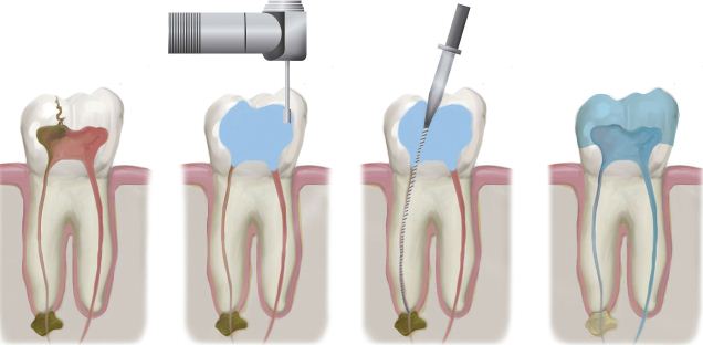 Лечение корневых каналов включает очистку и придание формы каждому каналу, а затем заполнение их специальным пломбировочным материалом. После этого они запечатываются, чтобы предотвратить проникновению инфекции. После завершения лечения корневых каналов зуб должен быть полностью восстановлен в соответствии с рекомендациями.